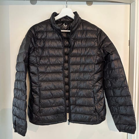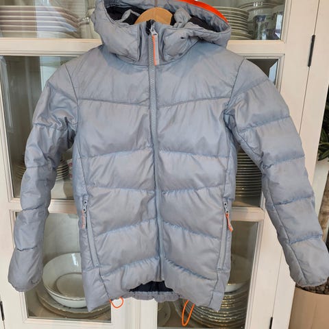 Meget pent brukt dunjakke i farge mørk blå fra Helly Hansen. Str XS. 85% gåsedun og 15% gåsefjær.