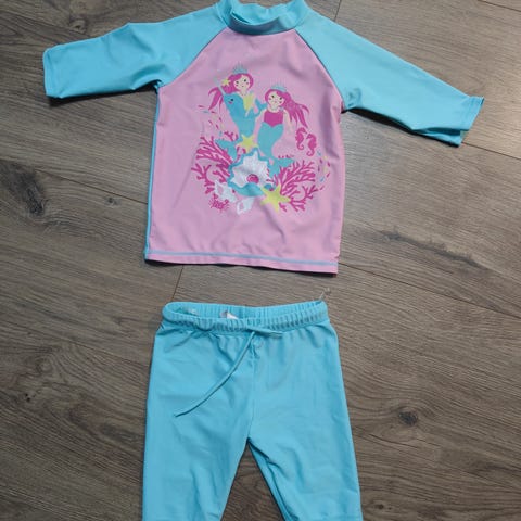 Sett med badedrakt, badekåpe og vest til svømmetimer str 74 - 80