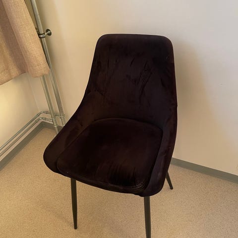 Pent brukt Gatsby stol i grå velur med messing understell selges. Sittehøyde 40 cm. Stolen ble kjøp på Bohus.