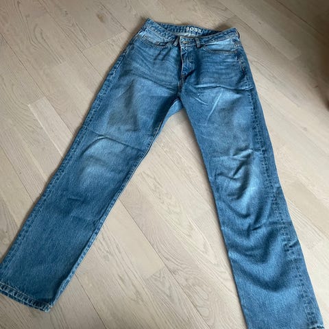 Hugo Boss jeans i flerfarget design for kvinner. Størrelse M med midjemål W28. Buksen har en unik mønstring som gir et moderne uttrykk. Egnet for casual og hverdagsbruk.