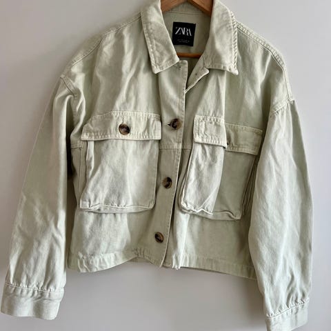 Pent brukt armygrønn jakke fra Zara i str L. Kort modell.