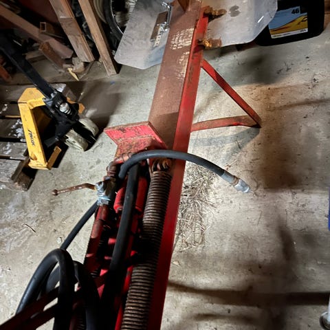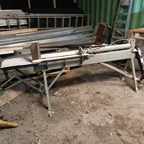 Sjur Jarle Stene vedkløyver med hydraulisk betjening. Maskinen er laget for å kløyve ved og består av en solid metallramme med hydraulisk sylinder og kontrollspak. Passer til bruk i utendørs miljøer for effektiv vedkløyving.
