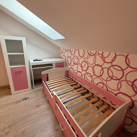 Seng lengde 120 bredde 60 høyde 85 pent brukt. Kommode Lengde 75 dybde 37 høyde 93 pent brukt. Selges samlet og må hentes.