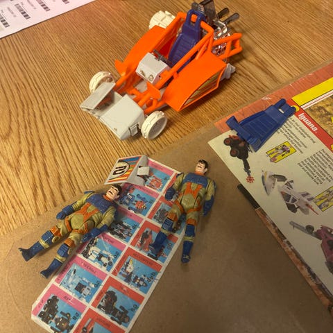 Med de utrolig vanskelig å finne delene: kikkert, boka, skjoldet, ryggsekken og fallskjermen.