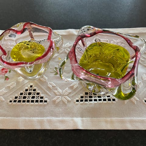 Det er tungt og laget av glass (krystall?)