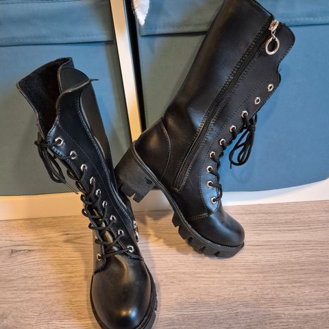 Gothic witchy vibes støveletter. Disse går sånn ca til midt på leggen. Selges grunnet at jeg blir veldig høy (typ basketballspiller). Kan evt måle såle høyde og hæl høyde om ønskelig :) obs har hund og katt