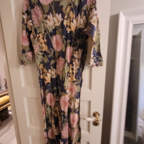 Pent brukt kjole fra byTimo i str L, i viskose. Nydelig farge og ermer. Den er for lang for meg og planen min var å legge opp kjolen, men jeg har ikke fått gjort det. Jeg er 1.64 m høy.
