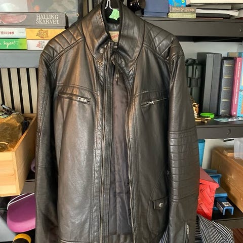 Kunstig skinnjakke ikke synlig brukt selges grunnet har samme jakke i annen farge
