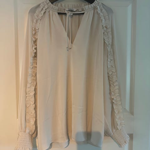 Bluse med offwhite blomstermønster, mener den er 100% bomull, men lappene er klippet bort.