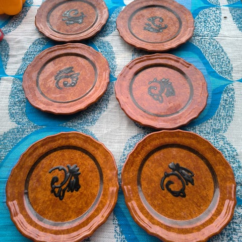 De største tallerkener (4) er 20 cm i diameter,de mellemste (2) er 15cm i diameter