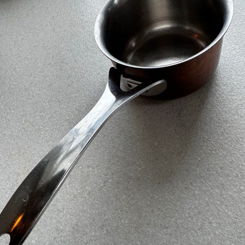 topp kvalitet - kobber/stål og med tykk bunn, passer ikke induksjon.