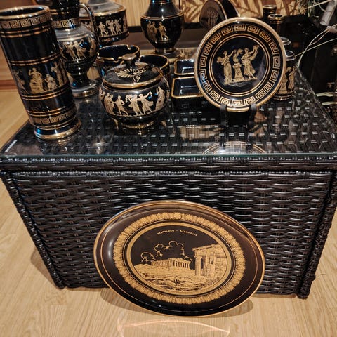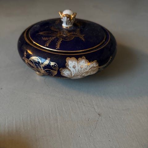 Selger en lav Gresk krukke/ smykkeskrin håndlaget med 24 K gull. Åpningen er 9 cm i diameter. Kan sendes mot at kjøper betaler porto eller hentes i Rygge. Se også gjerne mine andre annonser.