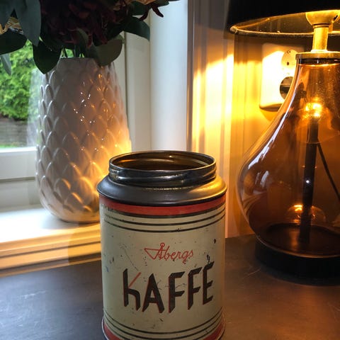 Gammel fin kaffe boks 2 kg Drægni 18 cm høy og 13 cm dia