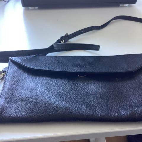 Praktisk og lekker double bag fra danske Decadent Copenhagen. Her har du to separate vesker som kneppes sammen slik at du kan velge hvilken side du vil skal fronte; anaconda print eller plain skinnveske, kommer an på anledningen. Anakonda-vesken kan brukes alene som clutch. Den uten print er festet til crossover-stroppen og har en glidelåslomme innvendig. Mål: 24x18 cm. Kan hentes på Løren eller sendes.