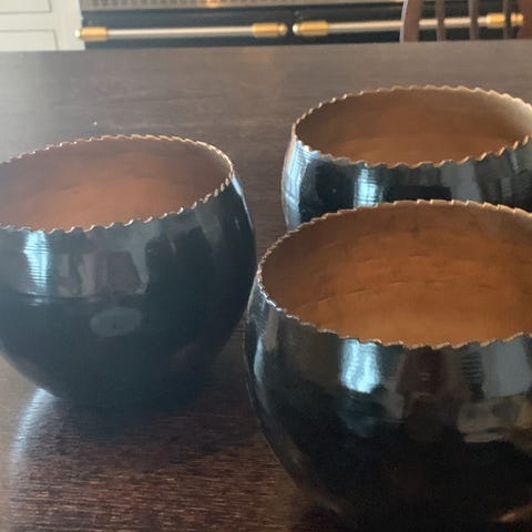 3 stk svarte metal blomster Potter med gull i innsiden . Kr.100.- per stk