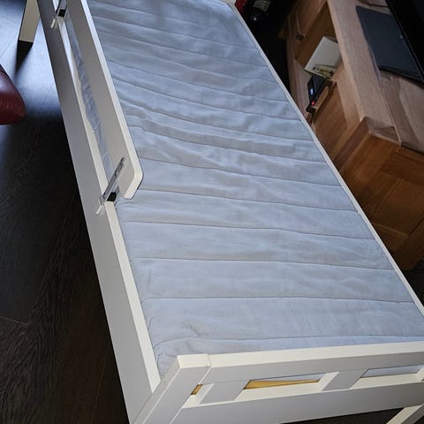 Madrassens trekk har noen flekker men trekket er vaskbart. 👍 Brukes jo også vanligvis med tissetrekk og laken oppå.