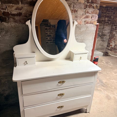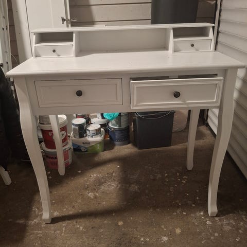 PS. Jeg kjøpte kun bordet å skuffer ikje (Stol å speil) første bildet e bare å vise hva som selger sendte til meg,