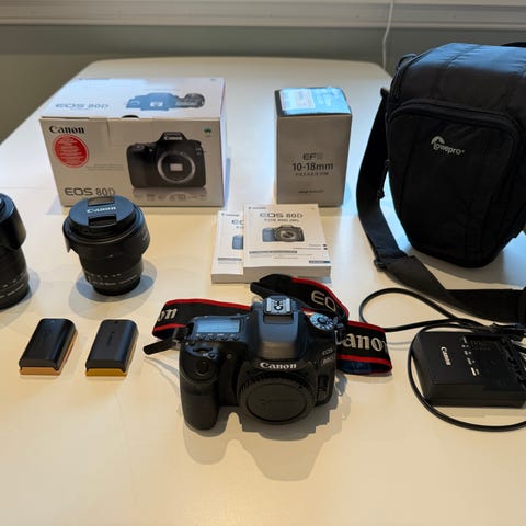 Canon EOS 80D speilreflekskamera (godt brukt, men ingen skader eller riper på glass)