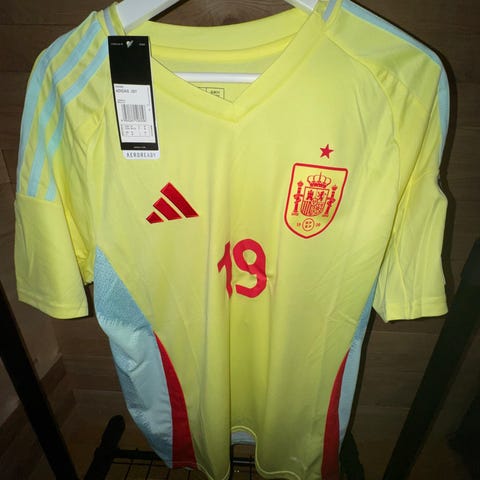 Veldig fin Spania drakt med Lamine yamal 19. Denne drakten er veldig eksklusiv med Euro patches og uefa nations league winners patch. Drakten er str M slim fit. Det vil si dette er spillerens versjon.