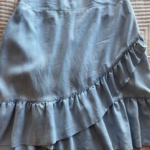 Skjørtet er brukt et par ganger, men jeg kan ikke se at det synes. Det er 41 cm «langt».