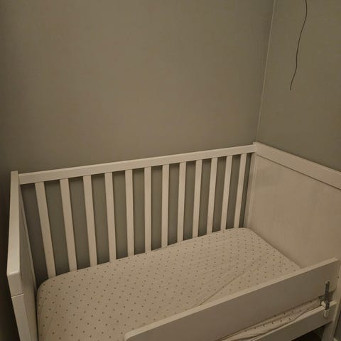 Kun blitt satt opp og har aldri vært i bruk for soving, kun til oppbevaring av bamser.
