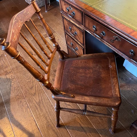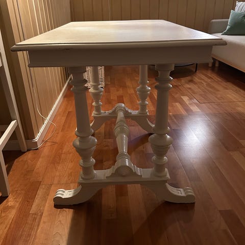 Nostalgiske gamle stoler selges samlet. Vi har brukt de til dekorasjon da vi ikke har villet belaste de. Kjøpt på en brukthandel i Lillehammer for 10-15 år siden. Har i sin tid vært blå, men vi kjøpte de slik de står nå. Vi er et dyre- og røykfritt hjem.