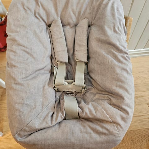 Selger et veldig pent brukt baby Seat som passer til trip trapp-stolen. Som ny, med lyst beige trekk. Kr 300, må hentes.
