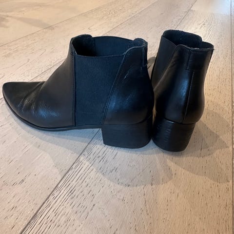 Pent brukte skinnboots fra Stockholm Design Group. Glidelåsen i siden kan åpnes noe som gjør skoen lett å ta på. Passer en normal str 39.