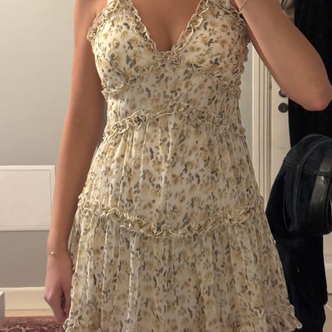 Selger en søt sommerkjole i størrelse S/XS med ananasmønster. Kjolen er i 100% bomull og består av både ytterstoff og fór.