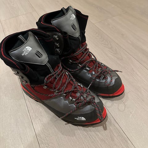 Vanntette, pustende, lette og svært komfortable tursko fra Scarpa. Støvlene er brukt på to korte turer. Liten, ubetydelig slitasje i ytterstoffet på den ene pløsen (gnissing mot lisse). Se vedlagt foto.