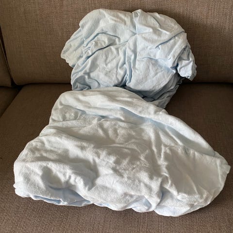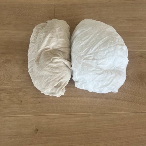 Selger en eller to hvite stretchlaken fra Shnuggle, laget i 100% bomull. Passer perfekt til sprinkelseng eller liten babymadrass (slik som vist på bildene).