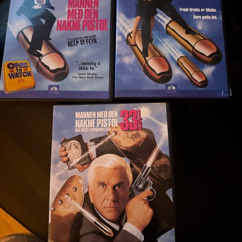 Alle de tre første komediene om politibetjenten Frank Drebin og hans uortodokse metoder for å løse saker, i disse Mannen med den Nakne pistol filmene.