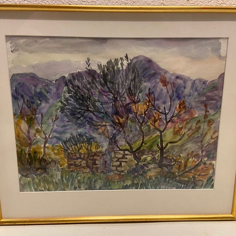 Akvarell landskapsbilde signert Else Wicklund 1992