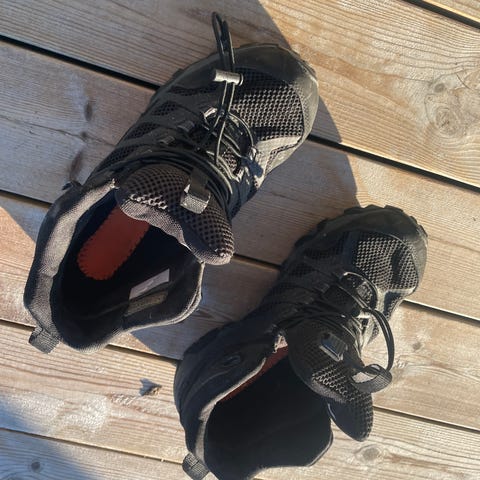 Merrell damesko, str.41. Skoene er brukte, men masse bruk igjen. Litt slitte kanter ved lissene (se bildet). Svarte med oransje detaljer.
