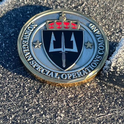 Sjøforsvaret. Hæren. Marinen. Mynt. Medalje. Tolken. Operatør. Dykkerutstyr. Padi. Dykker. Politiet. Marinejeger. Heckler & Koch. HK. Delta. Patch. Politiets spesialstyrke.