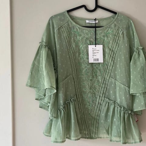 Selger en elegant hvit kjole i størrelse M ( vil si den passer S mer), aldri brukt og fremstår som ny. Kjolen har en vakker blondeoverdel med lange ermer og dekorative knapper foran, samt et lett utsvingt skjørt i chiffon/tyll som gir et klassisk og tidløst uttrykk. Det følger også med et langt, enkelt slør på ca. 2 meter i myk tyll, som festes med kam i håret. Passer perfekt til høytidelige anledninger for deg som ønsker et romantisk og stilfullt antrekk.
