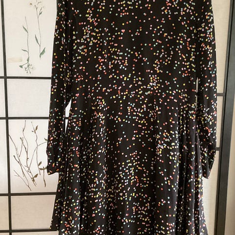 Nesten ubrukt kortermet kjole, som kan brukes hele året - selv eller med genser/ t-skjorte unne, kjøpt i Danmark.. Behagelig bomull/ viskose stoff.