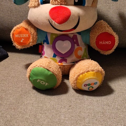 Fisher Price Laugh and Learn smart hundevalp - interaktiv bamse som lærer deg mye - snakker norsk