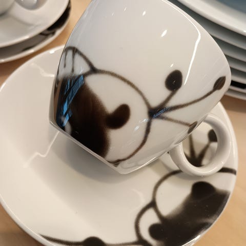 Fire kopper m/underskål fra Porsgrund porselensfabrikk, Partitur. Kaffe/cappucino, 20 cl.