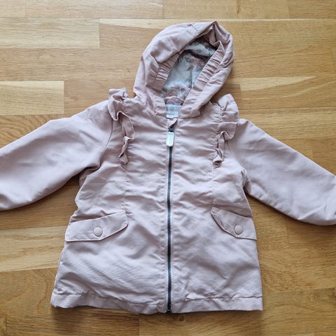 Pent brukt vårjakke/sommerjakke/høstjakke i dus rosa, fra Newbie. Str 86. Avtagbar hette. Fra røyke og dyrefritt hjem.