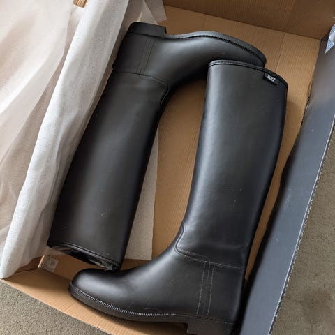 Pent brukt ridestøvel. Glidelås bak. Sort.