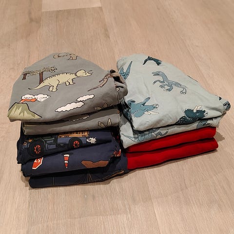 T-skjorter i str 110/116. Noen lite brukt noen litt mer, men ingen hull i de. Noen litt blasse i trykket etter vask. De er fra Namelt, Newbie, Polarn o Pyret