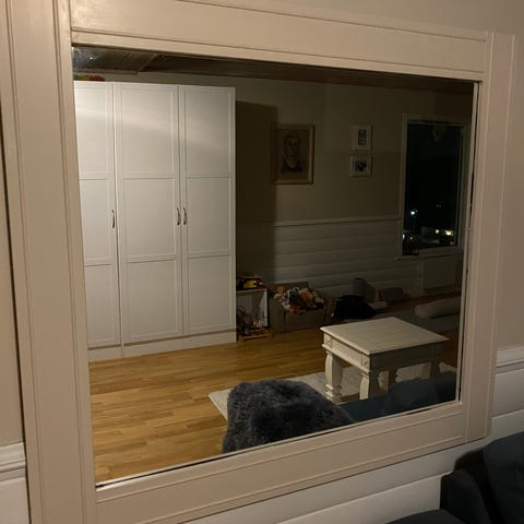 Nytt speil, høyde 51 cm, bredde 40 cm, selges kr 200. Kan sendes eller hentes på Flå. Har Vipps.