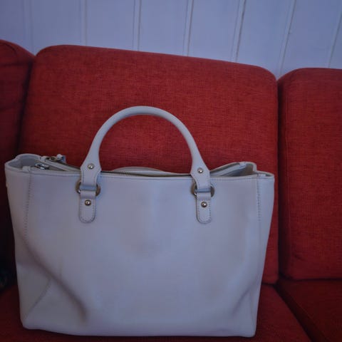Svart veske av skinn, 35x26 cm. Lite bruksmerker, pent brukt. Kan hentes eller sendes mot porto