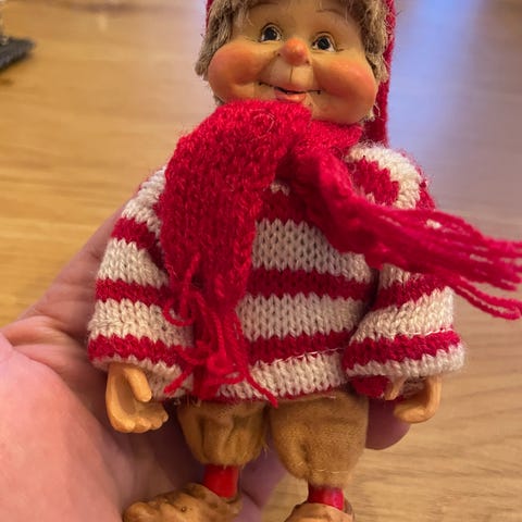 Nisse selges. Muligens rampenissen. Med litt jobbing kan den stå av seg selv. Noe bruksmerker/slitasje kan forekomme. Selges som den er. Se bilder.