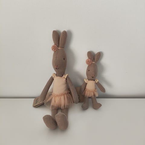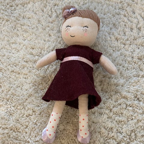 Mamas & Papas stoffdukke med brunt hår og rosa tutu. Dukken er laget av mykt stoff og har en sjarmerende design med detaljer som rosa sløyfer og en tutu-kjole. Passer godt som en leke eller dekorasjon på barnerommet.