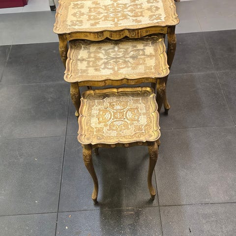 Settebord,mangler plater/marmor plater eller lag dine egne kreative plater av herdet glass f.eks. Gull dekor på understellet kan også få ny farge om man ønsker det.Mulighetene er mange for en hobby entusiast. Selges samlet.