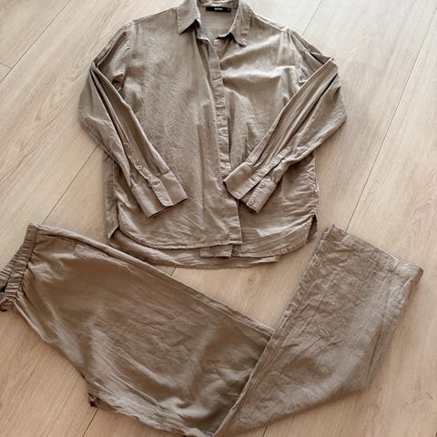 Sett i lin-miks fra Bik Bok. Setter består av en linbukse og en linskjorte. Kun brukt og vasket en gang. Kjøpt som «Get ready outfit» før et bryllup.