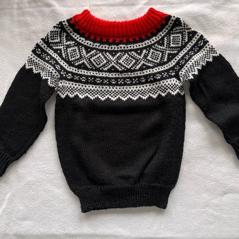 Aldri brukt. Strikket i Karisma superwash. Mariusgenser går aldri av moten! Porto tilkommer ved sending.