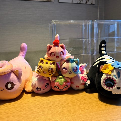 Vi selger våre aphmau plushies som vi har fått dobbelt opp av.
